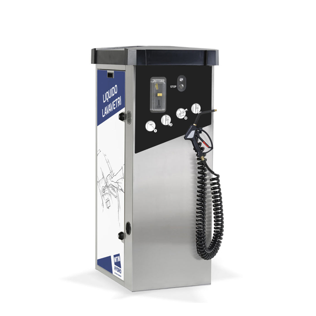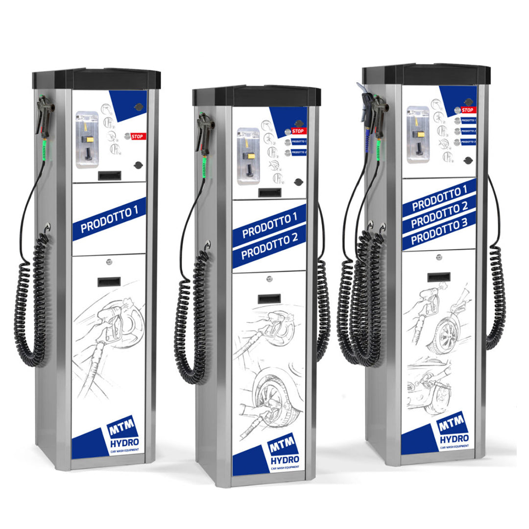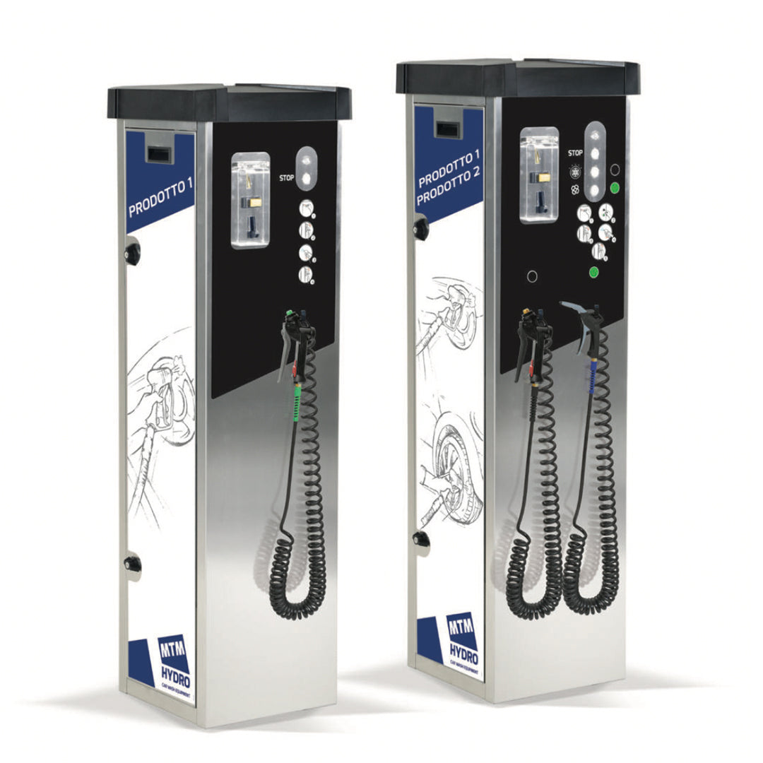 Permettono l’erogazione di diversi servizi (acqua, aria, prodotti detergenti) gestiti da schede elettroniche programmabili e compatibili con sistemi di pagamento a gettoni o chiavi elettroniche.