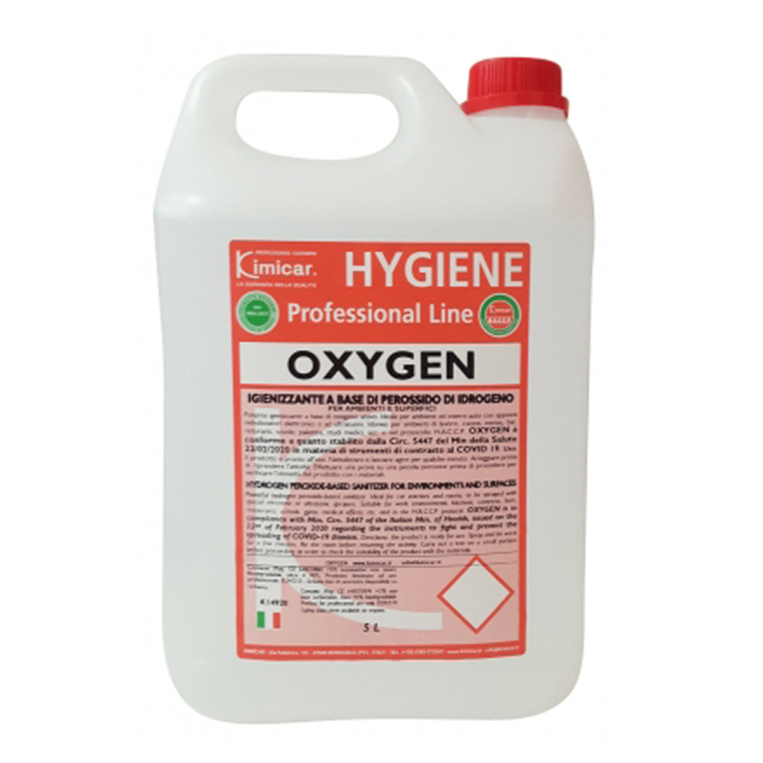 Il prodotto è pronto uso ed è idoneo per l’utilizzo con nebulizzatori a bassa pressione. Idoneo per essere utilizzato nel protocollo H.A.C.C.P. La sua azione igienizzante è una combinazione sinergica di perossido di idrogeno (potente igienizzante) e solubilizzanti dello sporco sia organico sia calcareo. OXYGEN supera tutti i controlli con gli specifici tamponi.